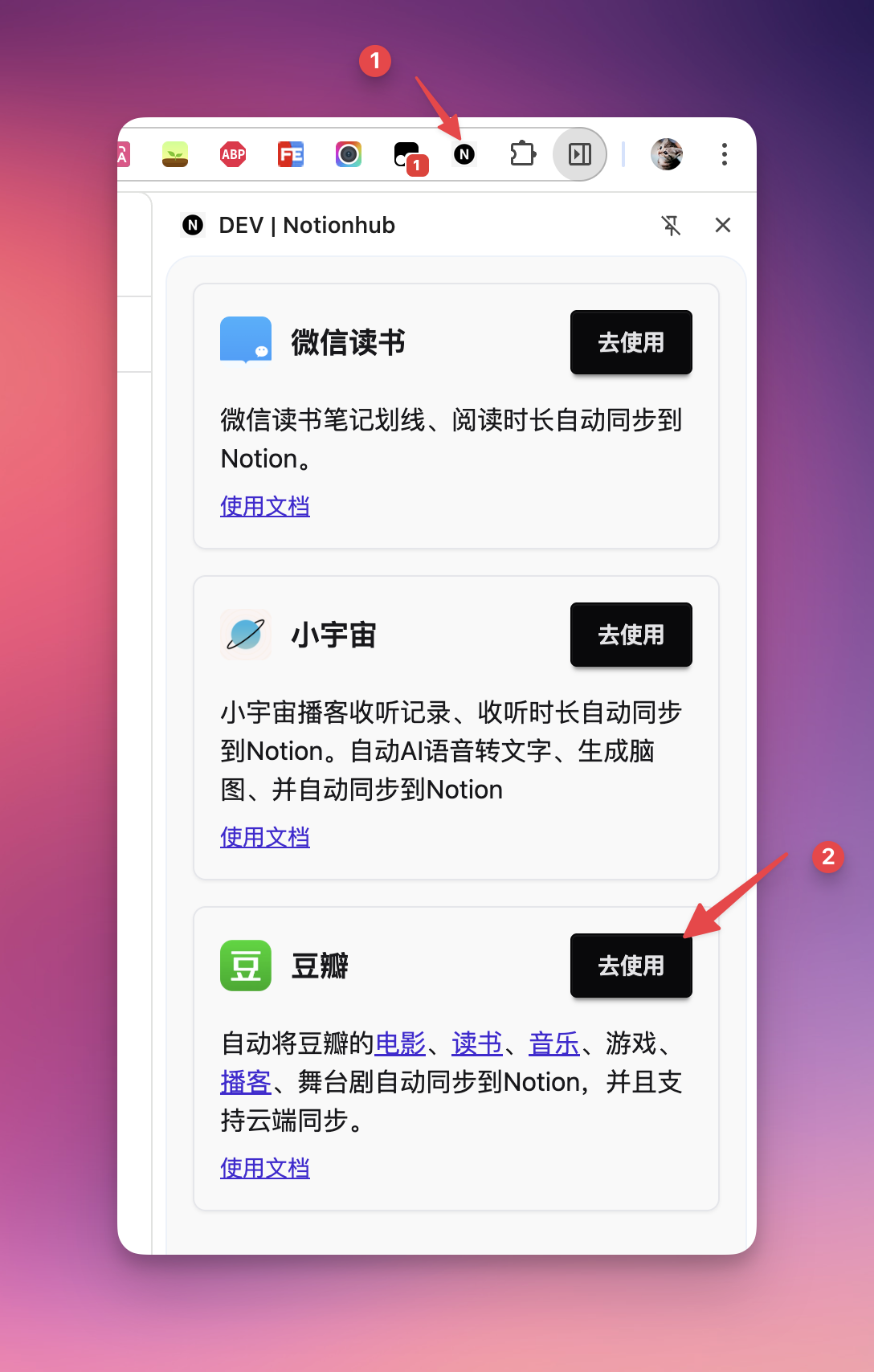 使用之前没有安装的请先参考安装指南安装Notionhub插件