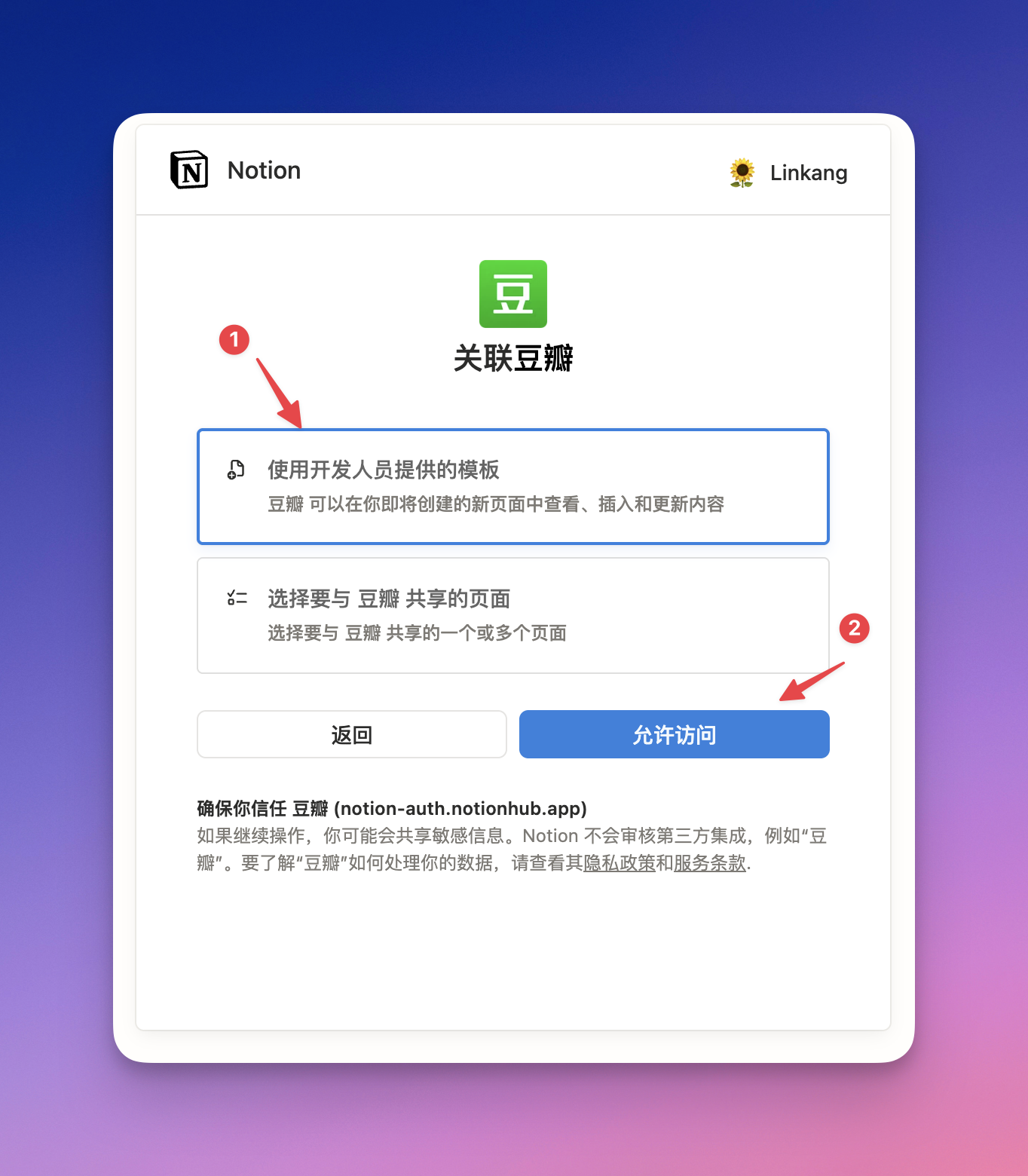 选择使用开发人员提供的模板,然后点击允许访问访问即可。